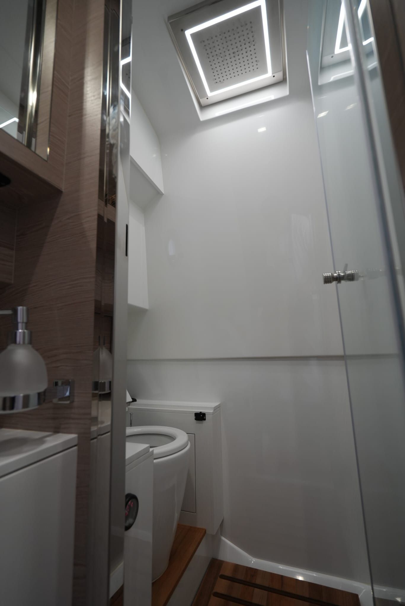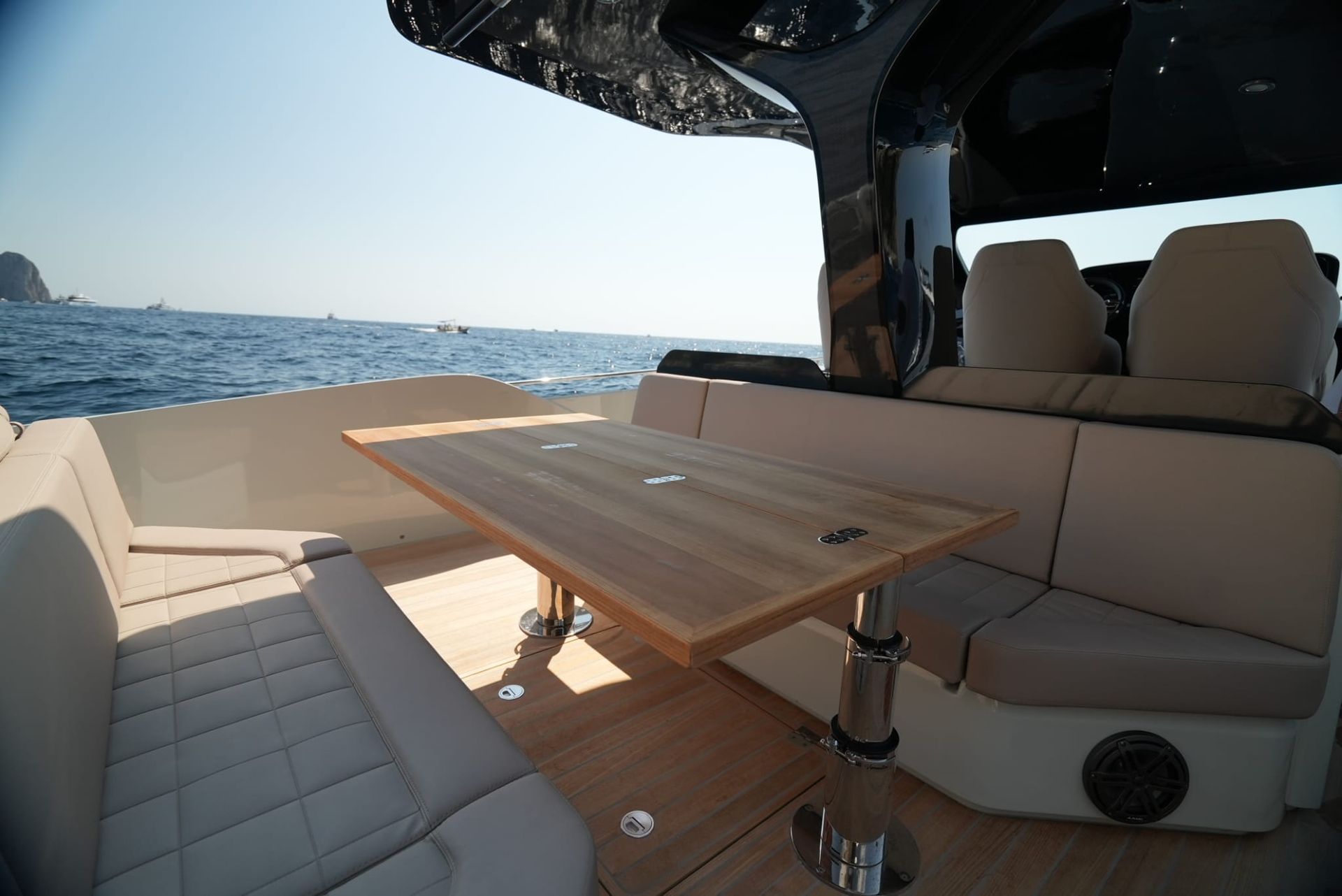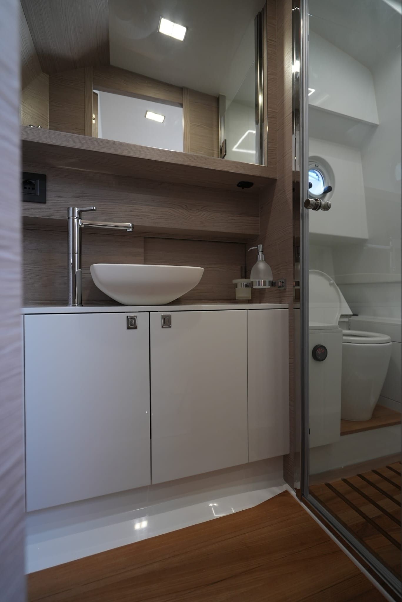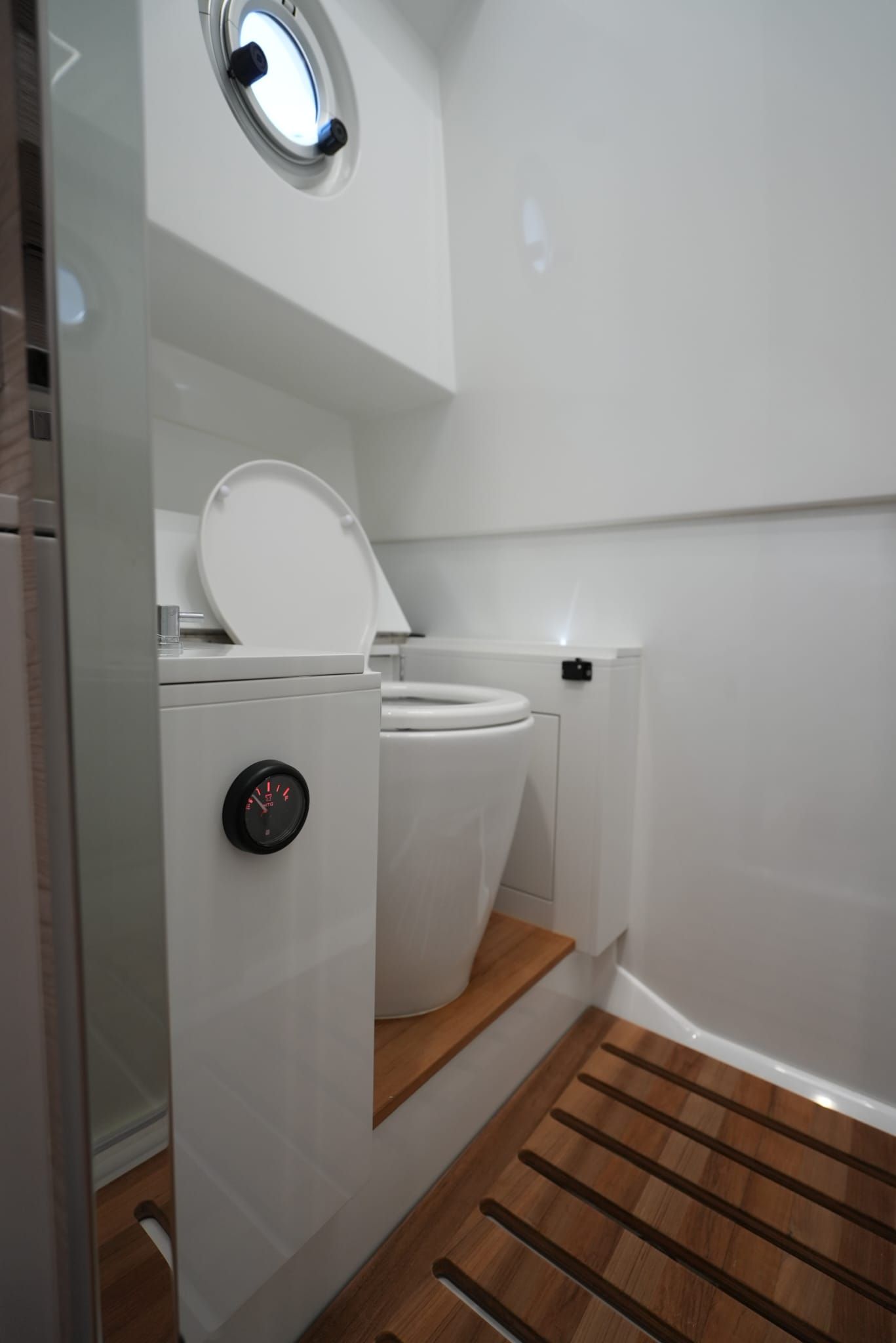 bagno completo, ideali per momenti di privacy, relax o brevi soste durante la giornata, rendendo questa imbarcazione una scelta perfetta sia per uscite giornaliere che per mini-crociere di lusso.